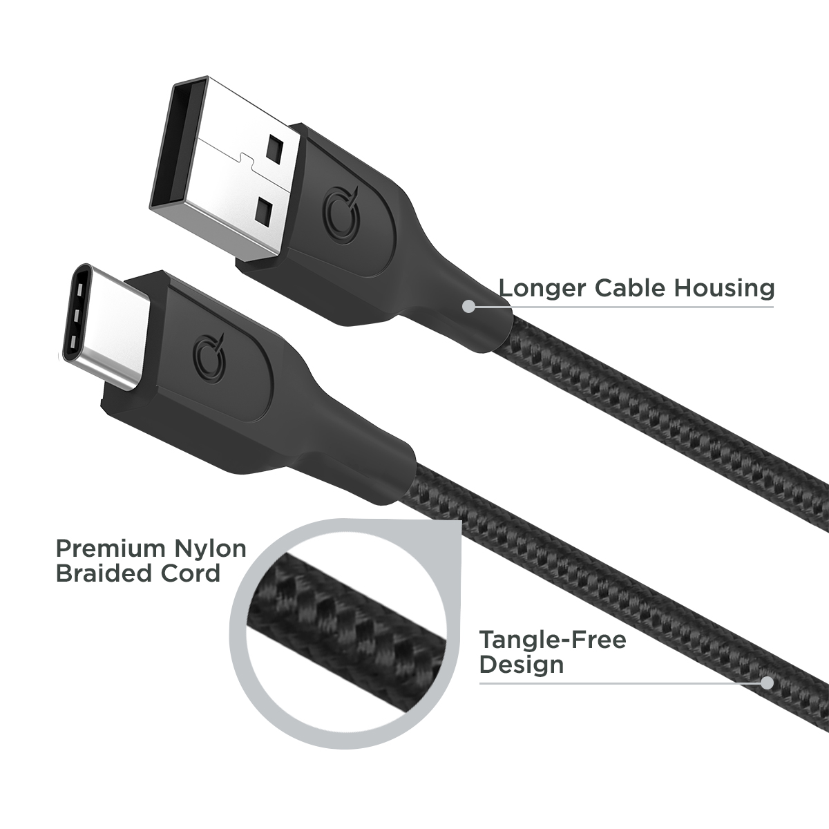 Quikcell CHARGE & SYNC CABLE USB-A to USB-C - 3 ft - Black