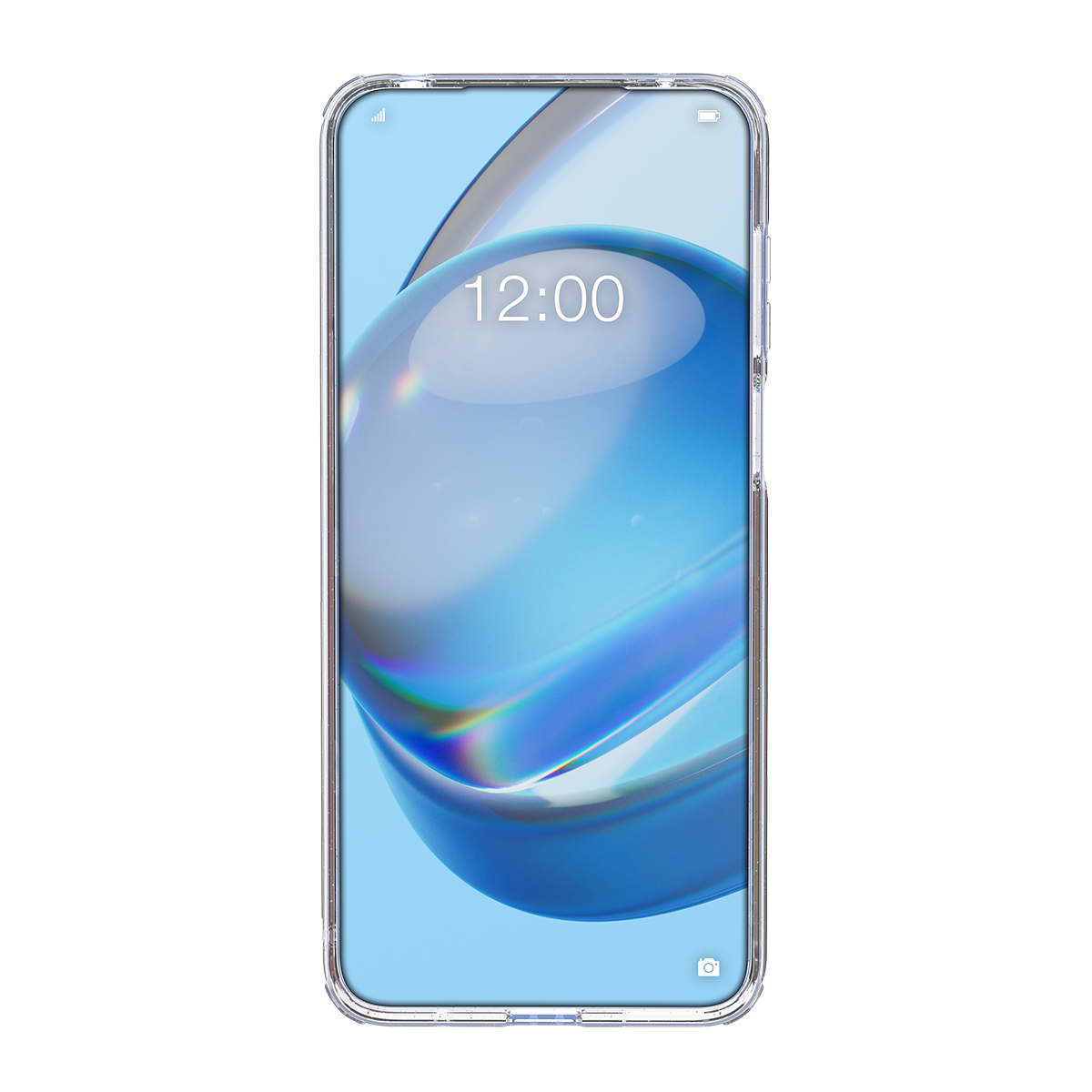 Raised edge bumper protects camera and screen from facedown drops