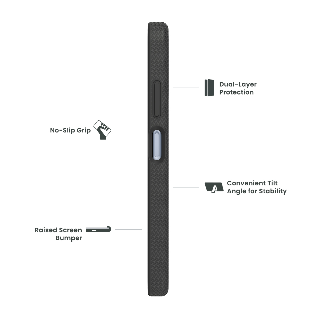 Expertly engineered kickstand provides ultimate stability for multi-angle tilt viewing