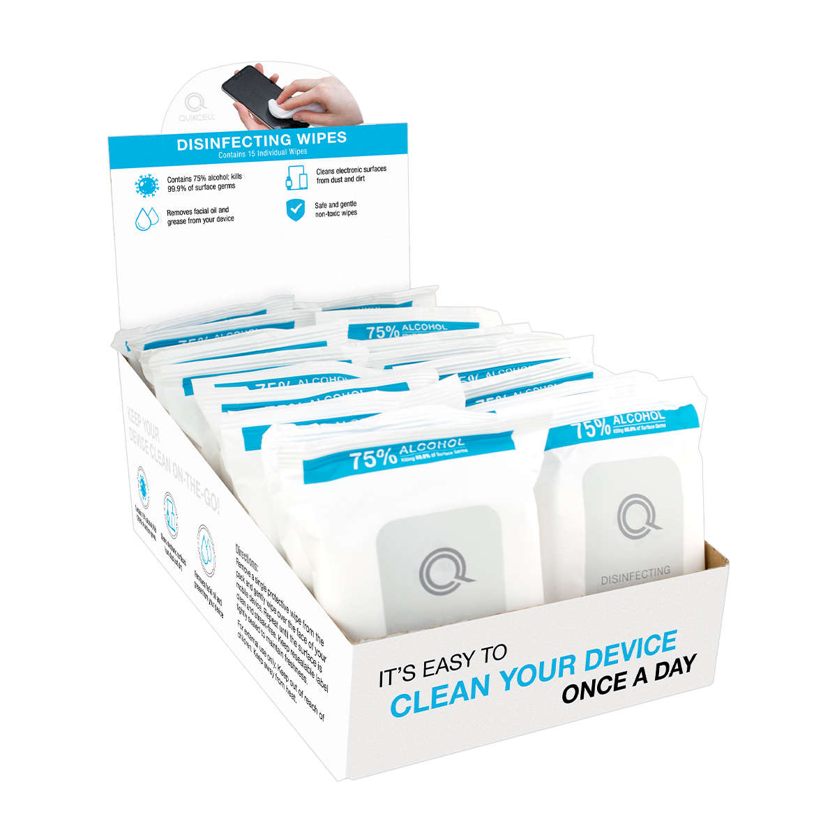 Quikcell Phone Wipes - Counter Display of 20 phone wipes
