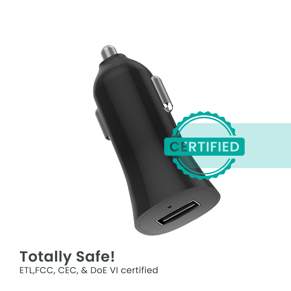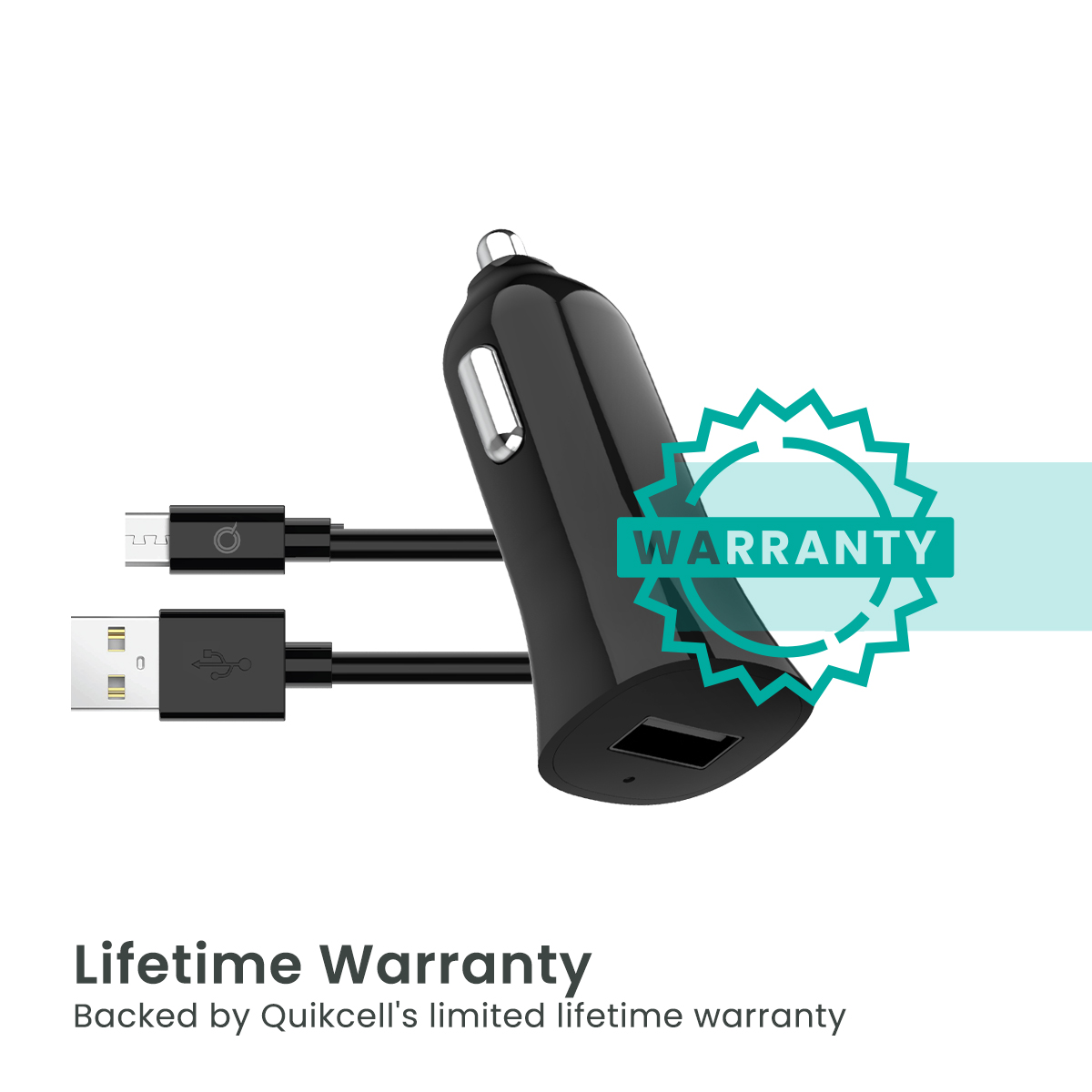 Quikcell POWER PACK 2.4A Car Charger + 4ft USB-A to MicroUSB Cable - Black