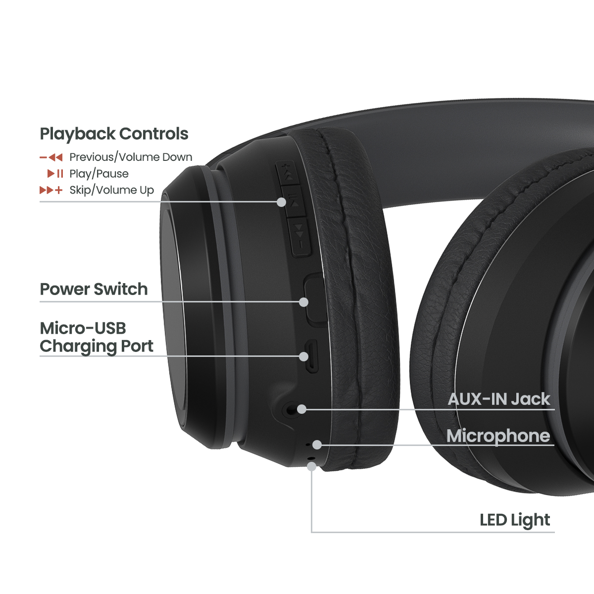 Quikcell QVIBE 200 Bluetooth On-Ear Headphones - Black