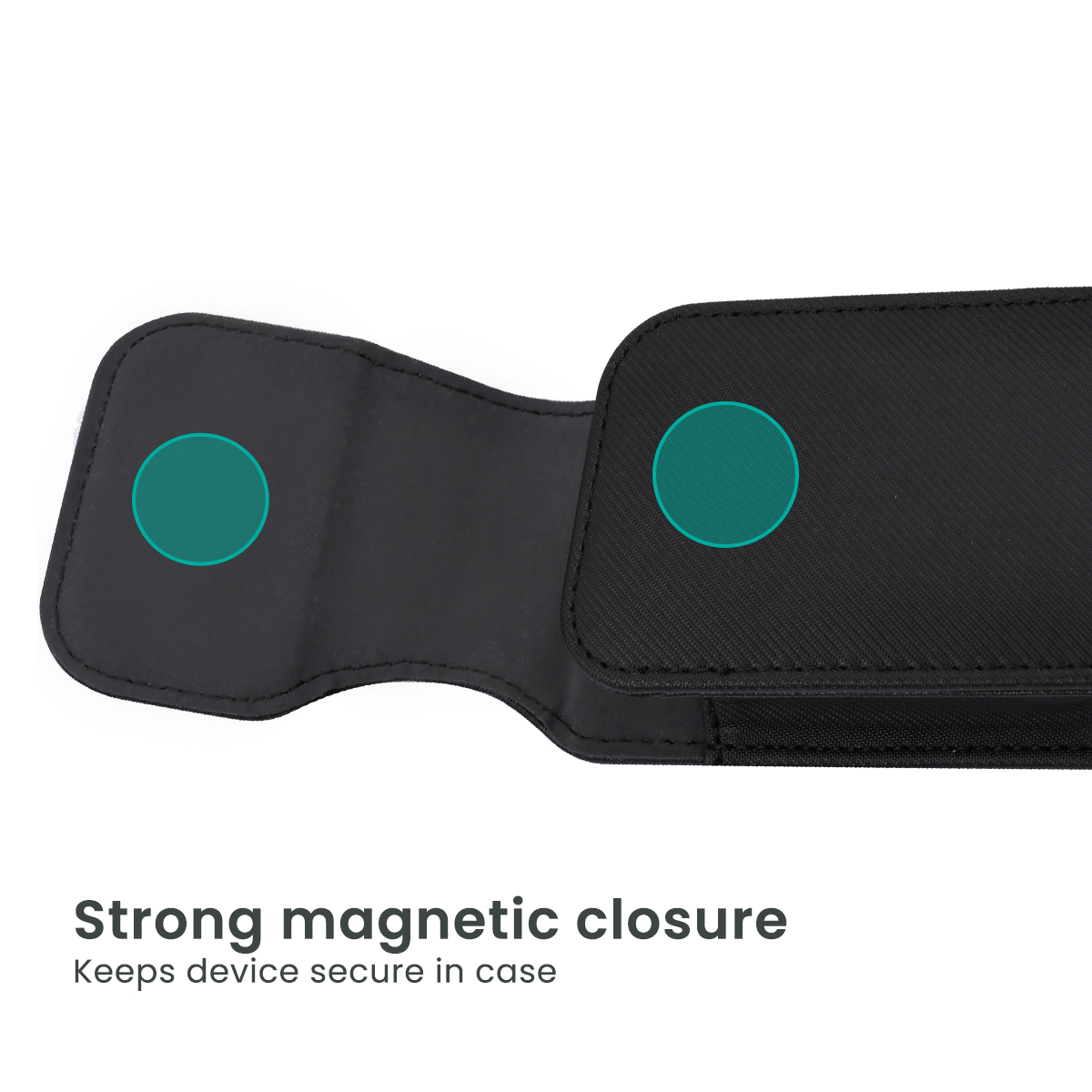 A strong magnetic closure keeps the phone secure within the case and prevents it from falling out