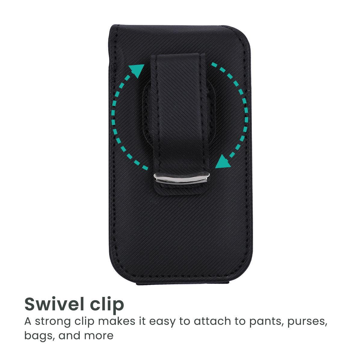 Made with a swivel clip built-in to allow you to clip on to pants, purses, bags, and more so you always have your phone with you