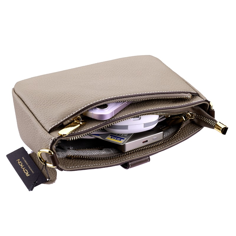 Roykin TOGO Large Textured Cowhide All-in-One Crossbody Shoulder Bag-Golden brown