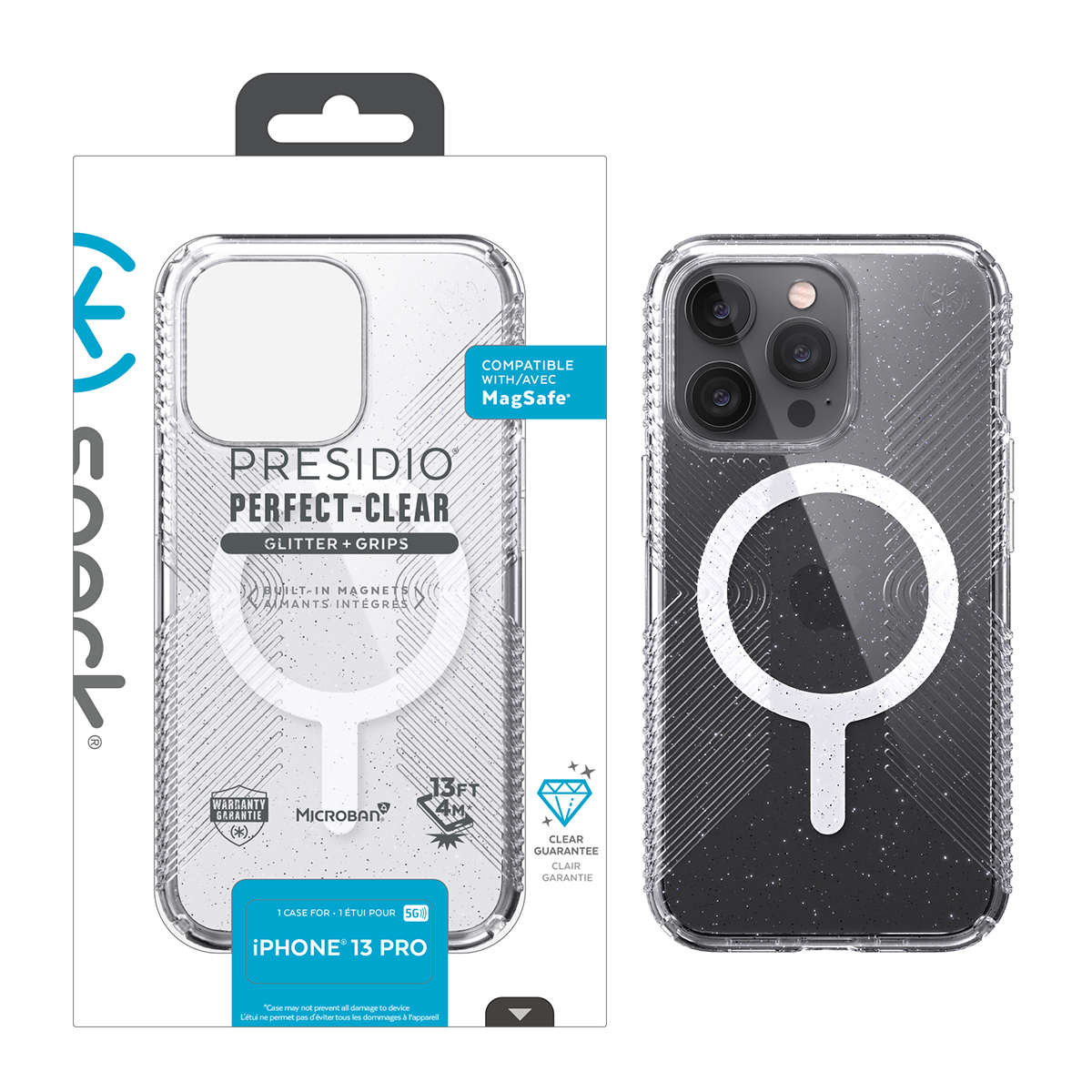 Speck Apple iPhone 13 Pro Presidio Perfect Clear Glitter Grip + Magsafe Cas