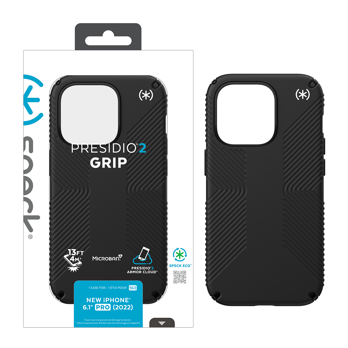 Get a grip on protection. The iconic Presidio2 Grip case with Presidio2 Armor Cloud™ Technology for 13-foot drop protection. Features innovative no-slip grips and Microban® antimicrobial protection.