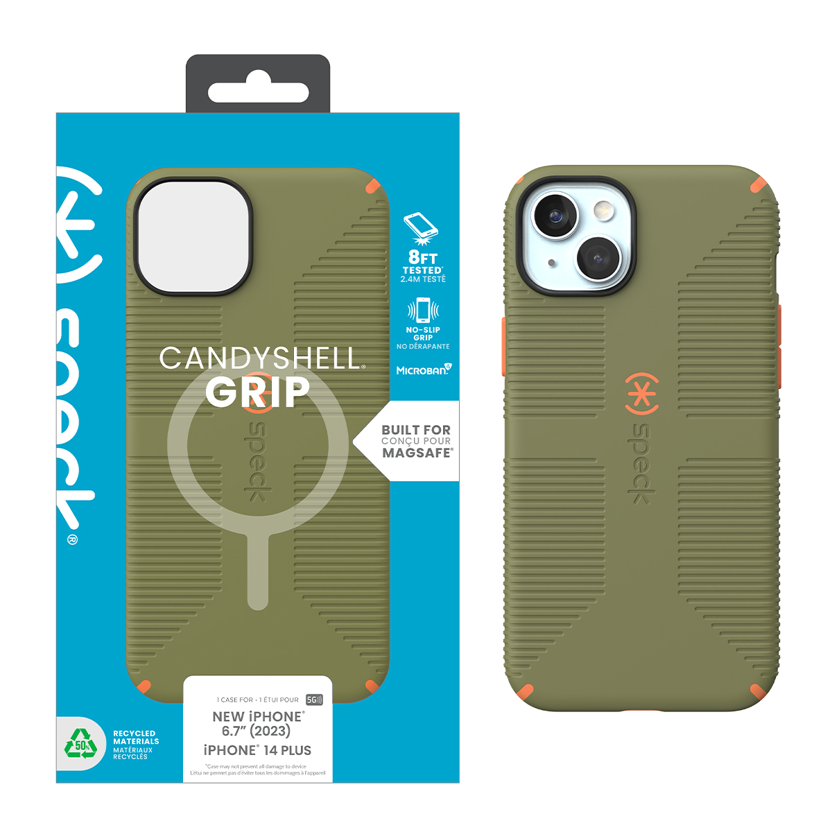 Speck's classic slim dual-layer case featuring a scratch-resistant, soft-touch coating and inverted no-slip grips, plus Microban® antimicrobial product protection. Specifically built for all Apple MagSafe® accessories.