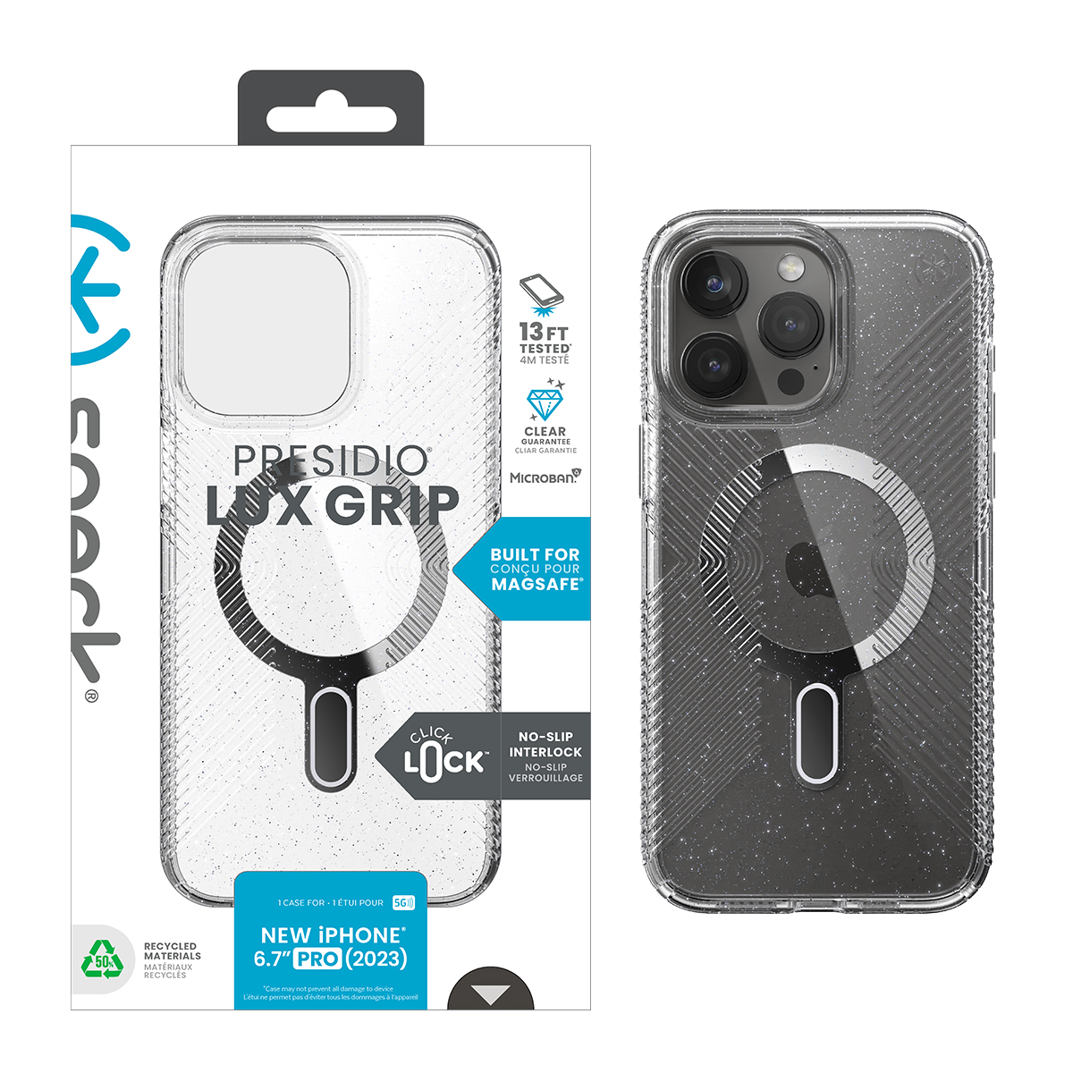 Here to revolutionize the case world - Speck introduces the ClickLock case built into the already popular Presidio case series design. Built to work flawlessly with MagSafe to enhance every users experience and make their phone even more functional.