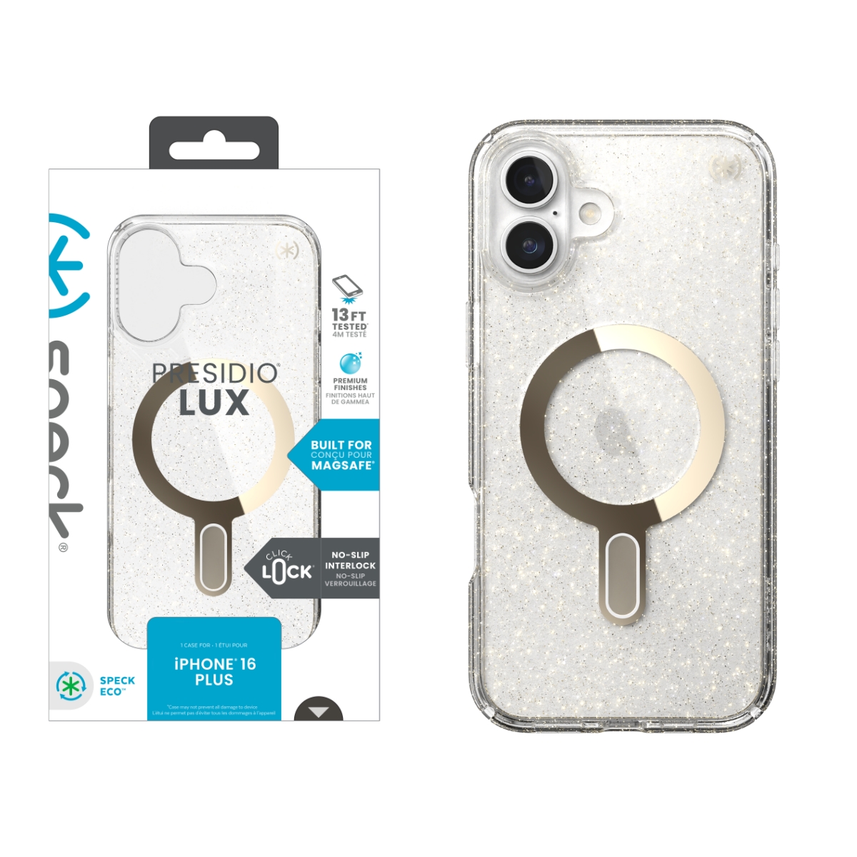 Speck Apple iPhone 16 Plus PRESIDIO LUX + CL CLEAR/CLEAR /GOLD GLITTER