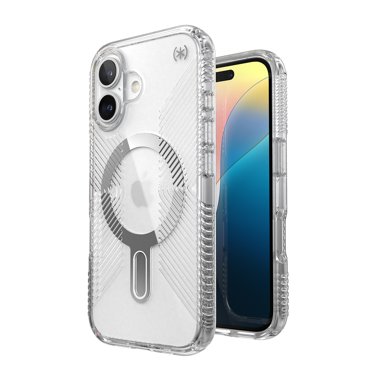 Speck Apple iPhone 16 PRESIDIO PERFECT CLEAR GRIP+ CL CLEAR/CLEAR/CHROME FINISH/SERENE SILVER
