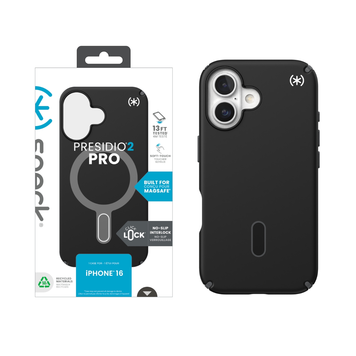 Here to revolutionize the case world - Speck introduces the ClickLock case built into the already popular Presidio case series design. Built to work flawlessly with MagSafe to enhance every users experience and make their phone even more functional.