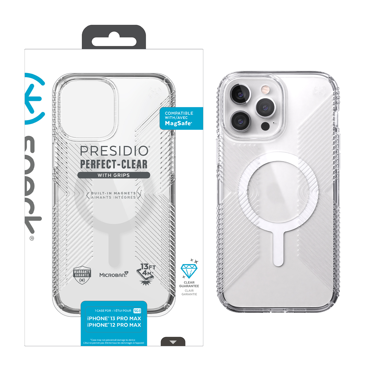 Speck iPhone 13 Pro Max/12 Pro Max PRESIDIO PERFECT-CLEAR GRIP Case + Magsafe - Clear
