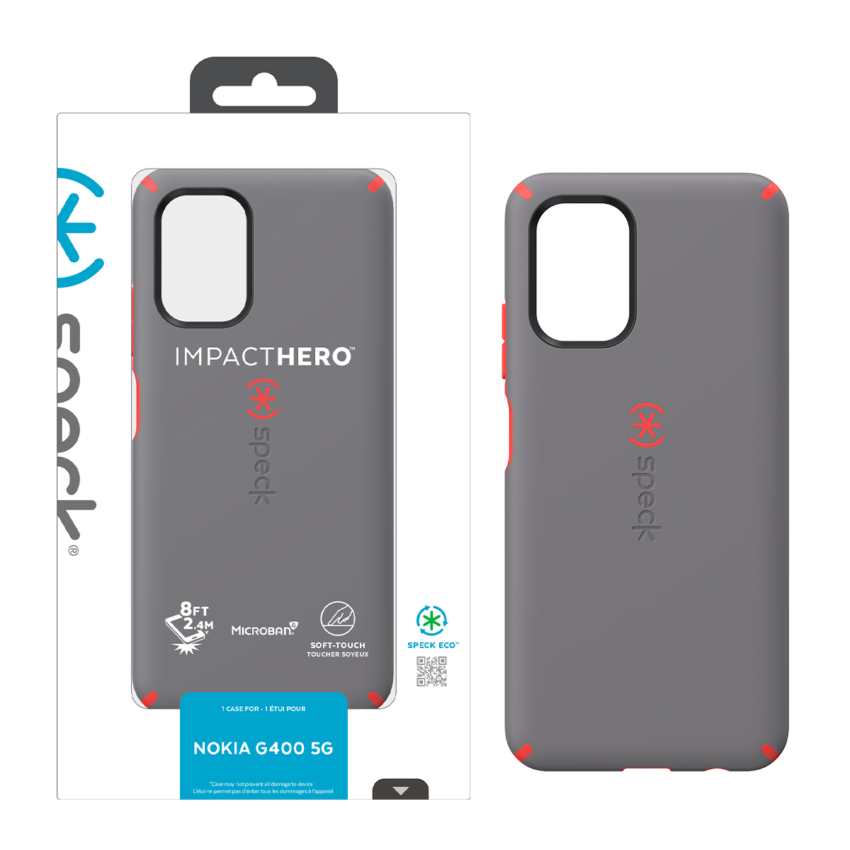 Speck Nokia G400 5G Impact Hero Slim Dual-layer Case - Moody Grey / Turbo Red