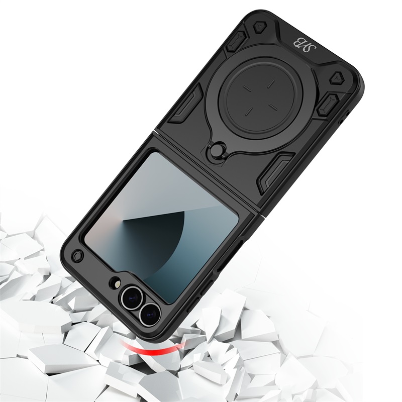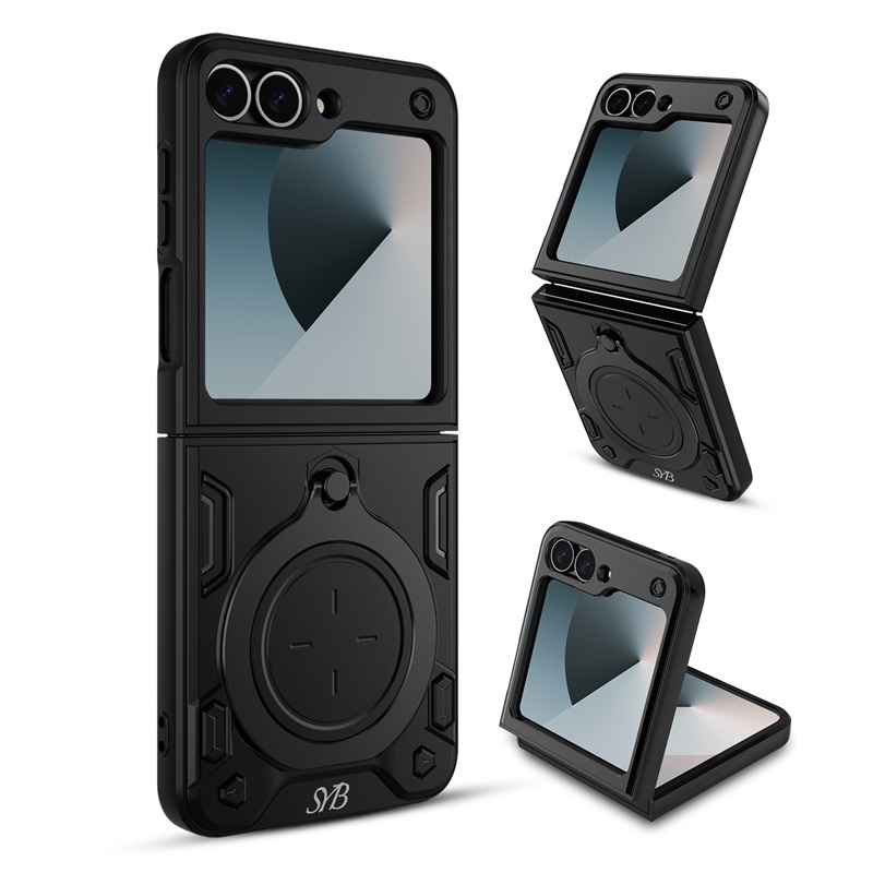 SYB Anti-Drop Hybrid Protector Case (with Ring Stand) for Samsung Galaxy Z Flip6 - Black / Black