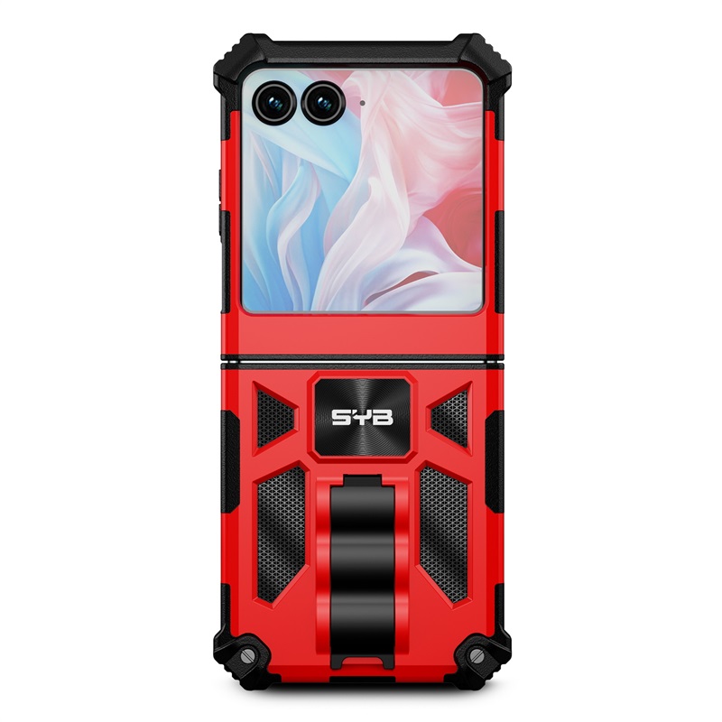 SYB Sturdy Hybrid Protector Cover (with Stand) for Motorola razr (2024) - Red / Black