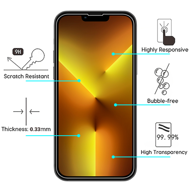 Features: 2.5D Rounded Edges 9H Hardness Rating Multi-Layered 5X Stronger Than Standard Glass Scratch Resistant Impact & Shatter Protection Oleophobic Anti-Fingerprint Coating High-Definition Screen Clarity Incredibly Thin: 0.33mm High-Response Touch Sensitivity Easy Bubble-Free Application
