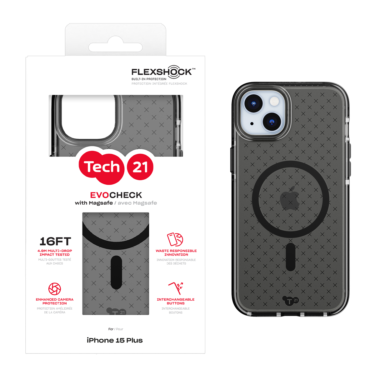 Tech21 EvoCheck w/MagSafe for iPhone 15 Plus - Smokey/Black