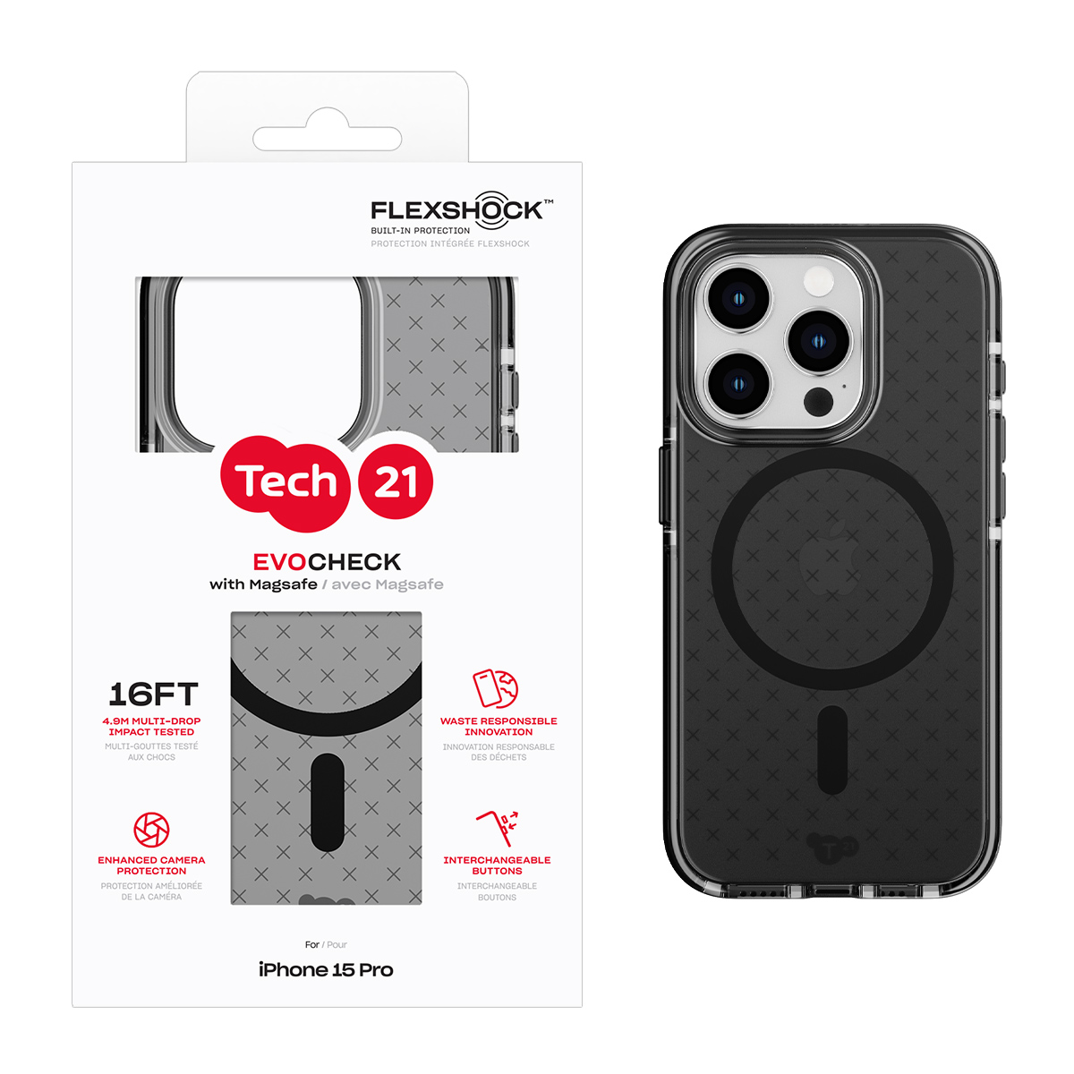 Tech21 EvoCheck w/MagSafe for iPhone 15 Pro - Smokey/Black