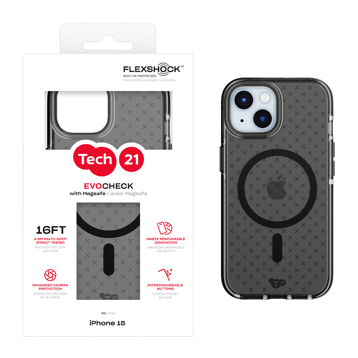 Tech21 EvoCheck w/MagSafe for iPhone 15 - Smokey/Black