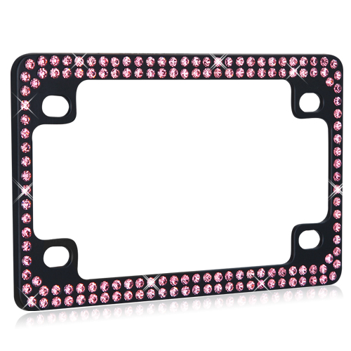Valor Double Row Black Metal Motorcycle Frame with Pink Crystals