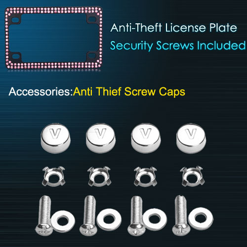 Give your customers a way to spruce up and customize their motorcycles with the 2 Row Pink Rhinestone Crystals Black Motorcycle Frame. This elegantly crafted, 2-row pink rhinestone crystal-lined black metal license plate frame adds a touch of luxury and sleek shine to any bike. The frame measures 12.25 x 6.25 inches, the ideal size, and fits any car. The frame meets all state laws and won't block any registration tags. This durable stainless steel license plate holder provides maximum protection from weather conditions and will not easily bend or deform. License plate screws, and screw covers, are included in the package. Valor offers a limited one-year warranty for the 2 Row Pink Rhinestone Crystals Black Metal Motorcycle Frame, ensuring the best quality, performance, and customer satisfaction. Features: Designed For 7" x 54" License Plates Street Legal Won’t Block Tags & Registration Made From Durable Stainless Steel Weather Resistant Quick & Easy Installation Includes 4 Screws & Screw Covers 1-Year Warranty