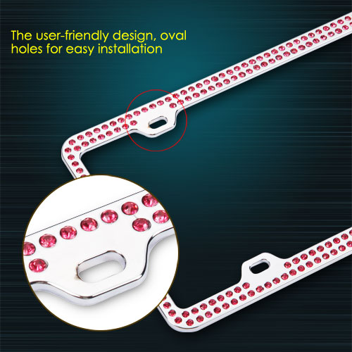 Valor Pink Crystals Chrome Coating Metal Frame with Double Row Crystals